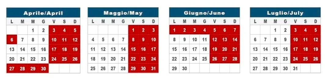 🔹 w maju: + 01.05 + 02.05 + 03.05 + 08.05 + 09.05 + 10.05 + 15.05 + 16.05 + 17.05 + 22.05 + 23.05 + 24.05 + 29.05 + 30.05 + 31.05